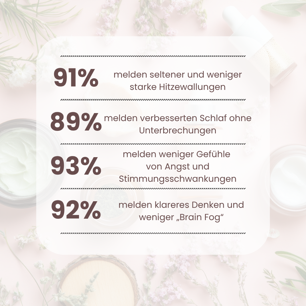 Die meisten Frauen bemerken bereits nach 2–3 Wochen erste Verbesserungen – besserer Schlaf, weniger morgendliches Unwohlsein oder mehr Energie.